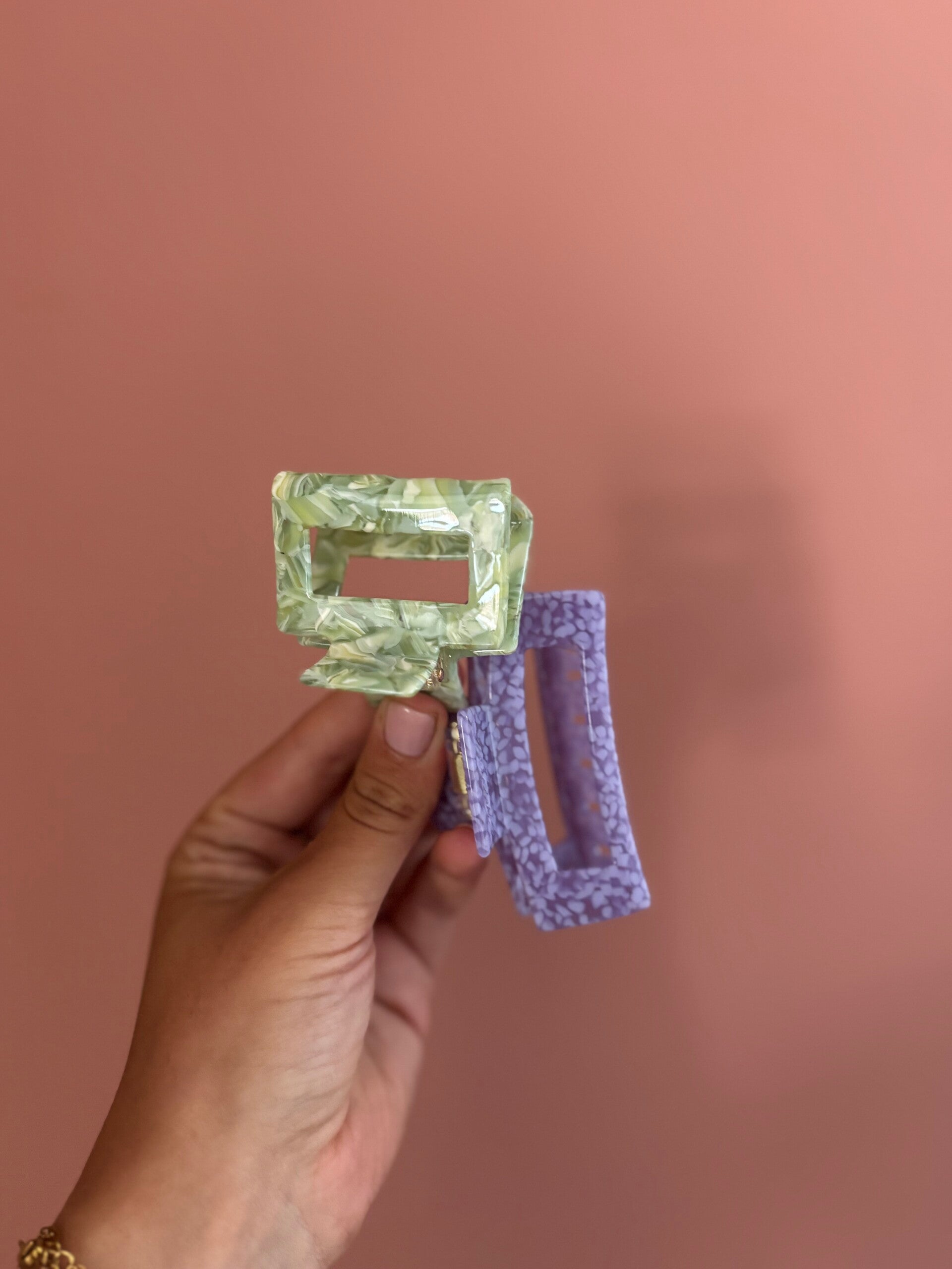 Het tijdloze, rechtlijnige ontwerp in harmonieus paars omsluit je haar zorgvuldig. Deze haarclip is geschikt voor elke gelegenheid, een absolute allrounder.