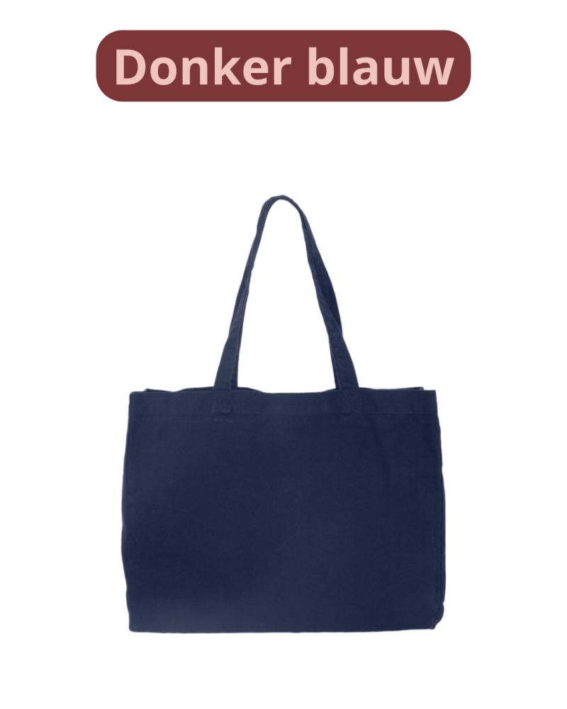 Kies zelf de kleur van de tas én de kleur van de opdruk, zodat hij helemaal bij jouw stijl past.